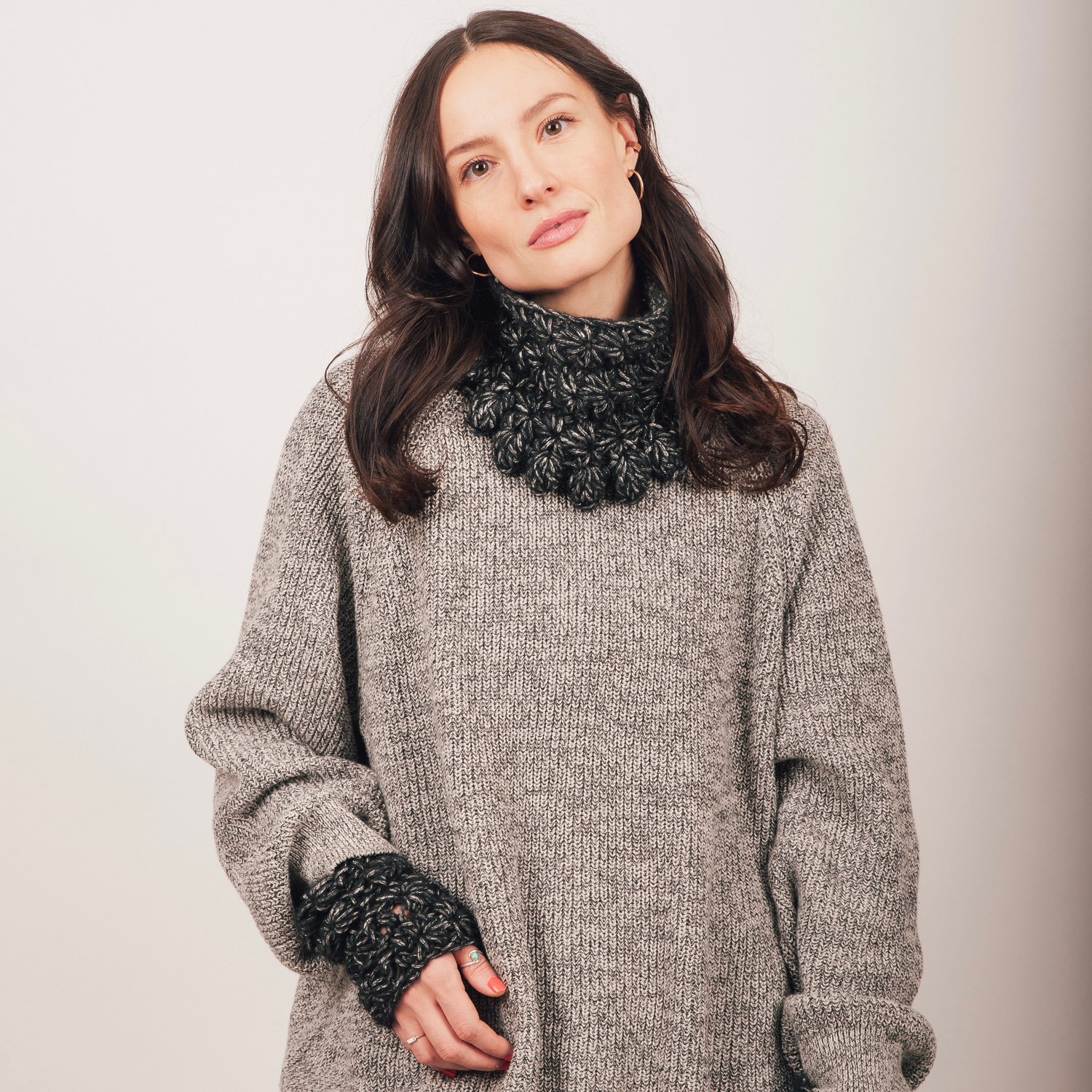 The fabulous Star Stitch - aka Marguerites - comes to life with this glam yarn. Crocheted with a large hook and bulky yarn, it makes for the coziest and cutest set!