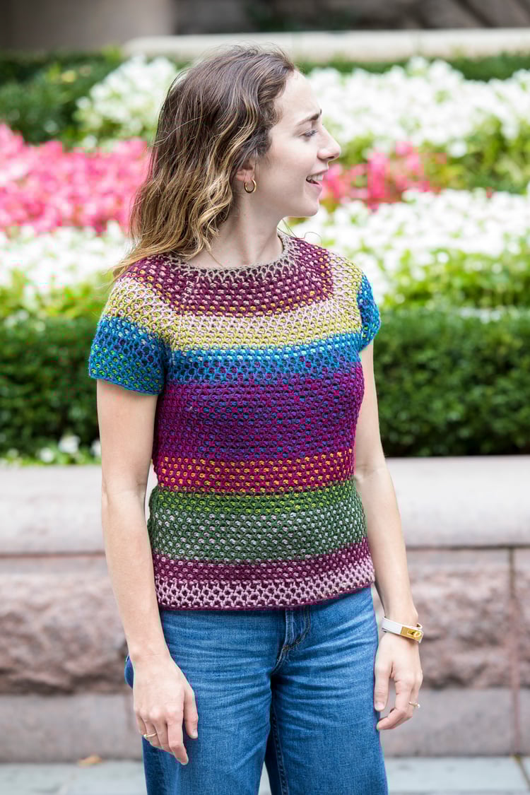 What an outfit! If you love ripple stitches and enjoy an adventure, this is the pattern for you. Check out the pattern called Marietta for a longer version of the top.
